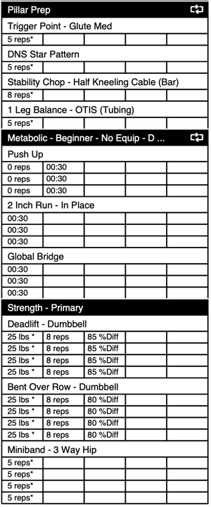 Always begin and end your workouts with a good warm-up and recovery. Warm-up includes functional movement patterns, foam rolling, and some exercises that get the heart rate up. Recovery should include some stretching, mobility work, or foam rolling. Make sure to spend a good amount of time on each. Ideally, you would want to spend about 5-10 minutes for each warm-up and cool down.